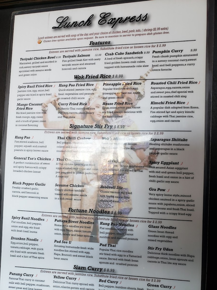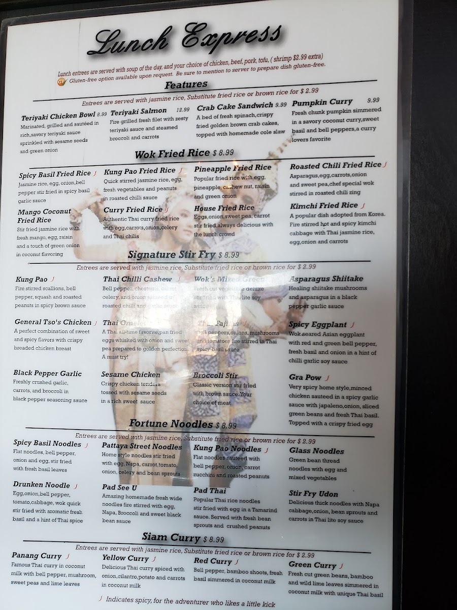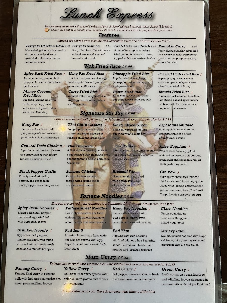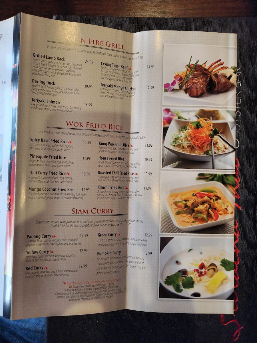 Authentic unique curry flavor fried rice, egg carrots, onion celery and thai sun-dried chilis.
