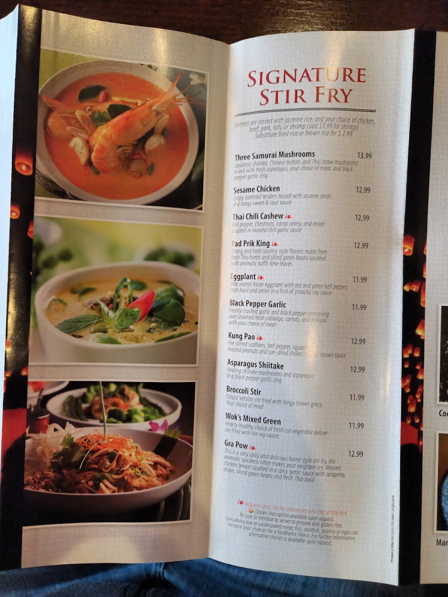 Bell peppers, onions, mushrooms and tomatoes fire stirred in thai spicy garlic basil sauce.